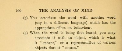 (4) When the word is being first learnt, you may associate it with an object, which is what it " means" or a representative of various objects that it "means."